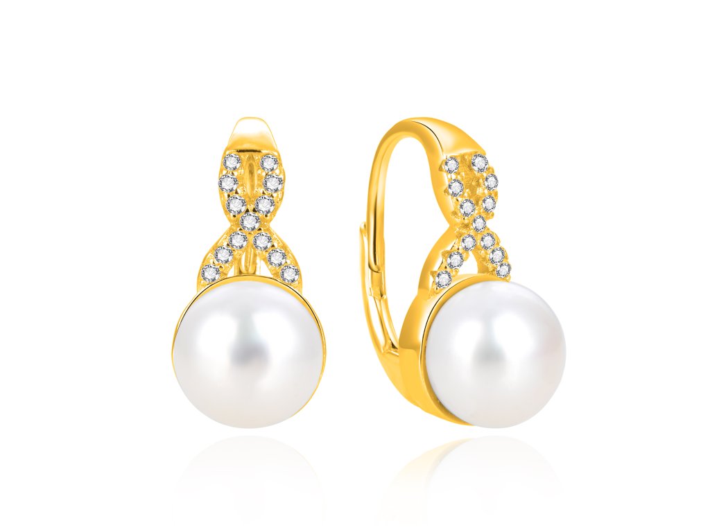 Jemné pozlacené náušnice s perlou a zirkony AGT-E275LW-P-G