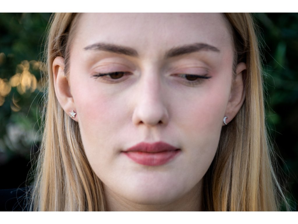 Vyrobené ze stříbra ryzosti 925/1000, tyto náušnice kombinují jemný motiv měsíce a hvězdy s pohodlným zapínáním na puzetku, které zajišťuje bezpečné nošení. Ideální pro ženy i dívky, které hledají výrazný, ale elegantní doplněk, a hodí se také jako originální dárek. Tento stříbrný šperk vnese do outfitu kousek třpytu a kouzla, vhodný na každodenní i slavnostní příležitosti.