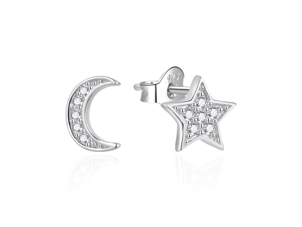 Jemné stříbrné náušnice s designem hvězdy a měsíce AGT-E019PW
