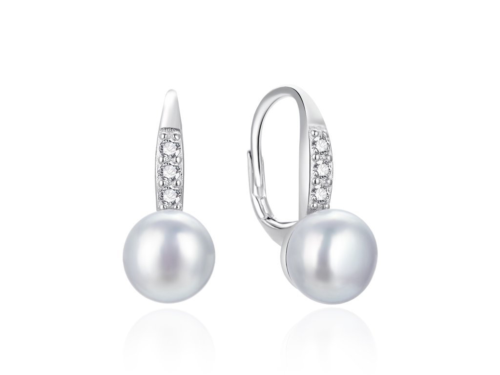 Jemné stříbrné náušnice s perlami AGT-E093LW-P