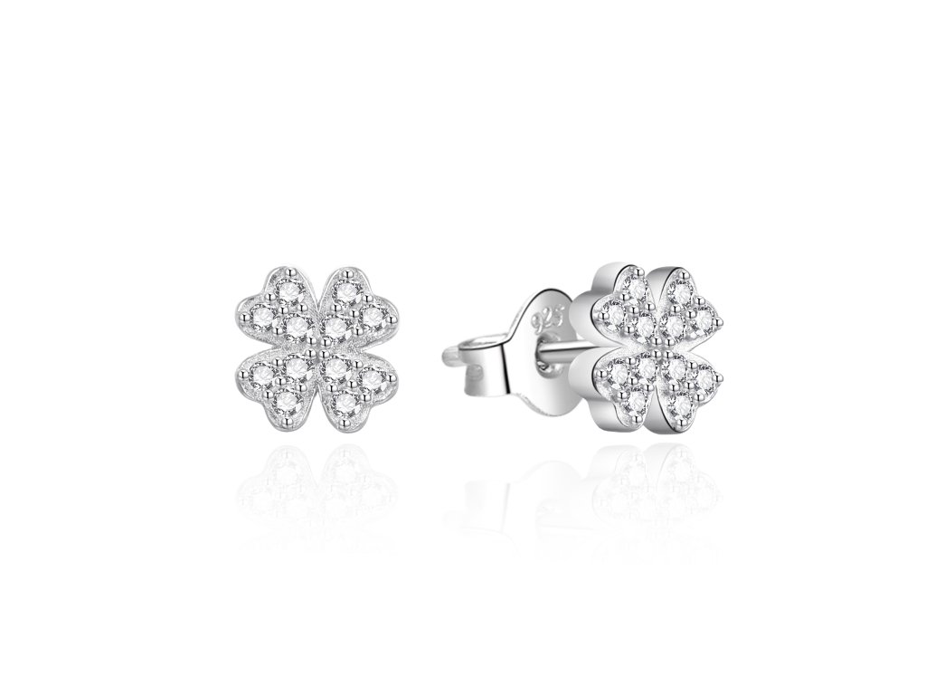 Jemné stříbrné náušnice se čtyřlístkem AGT-E098PW