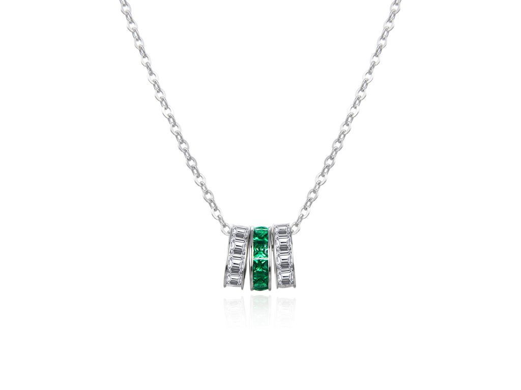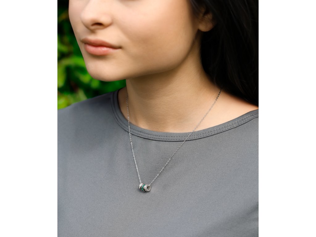Délka 42 cm s možností prodlužení o 5 cm zajišťuje pohodlné nošení a perfektní přizpůsobení. Kruhové detaily dodávají náhrdelníku harmonii a jemný třpyt, zatímco zelené zirkony přinášejí svěží akcent a pozitivní energii. Náhrdelník je ideální jako dárek, pro každodenní nošení i pro chvíle, kdy chcete dodat svému stylu eleganci a šarm.