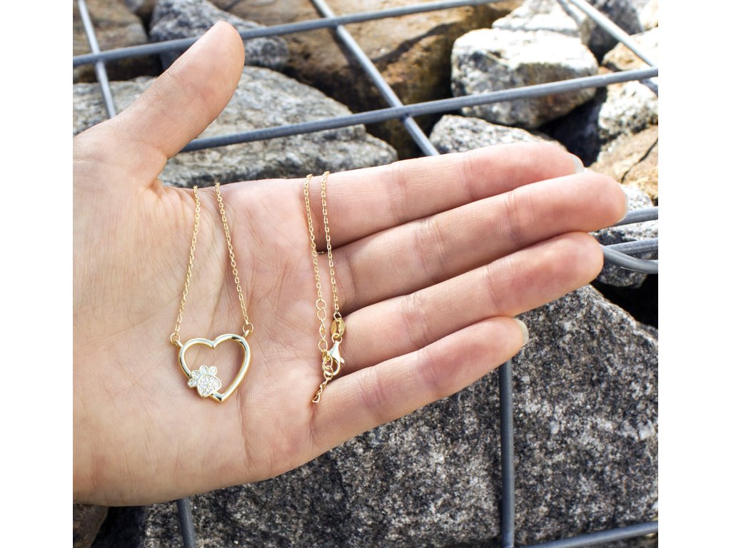 Na jemném stříbrném řetízku pozlaceném žlutým zlatem se vyjímá přívěsek ve tvaru srdíčka s třpytivou pacičkou, osazenou drobným zirkonem. Délka náhrdelníku je 42 cm s možností prodloužení o 6 cm, takže perfektně padne. Tento šperk vnese do vašeho stylu hravost i eleganci a stane se milým talismanem pro každý den.