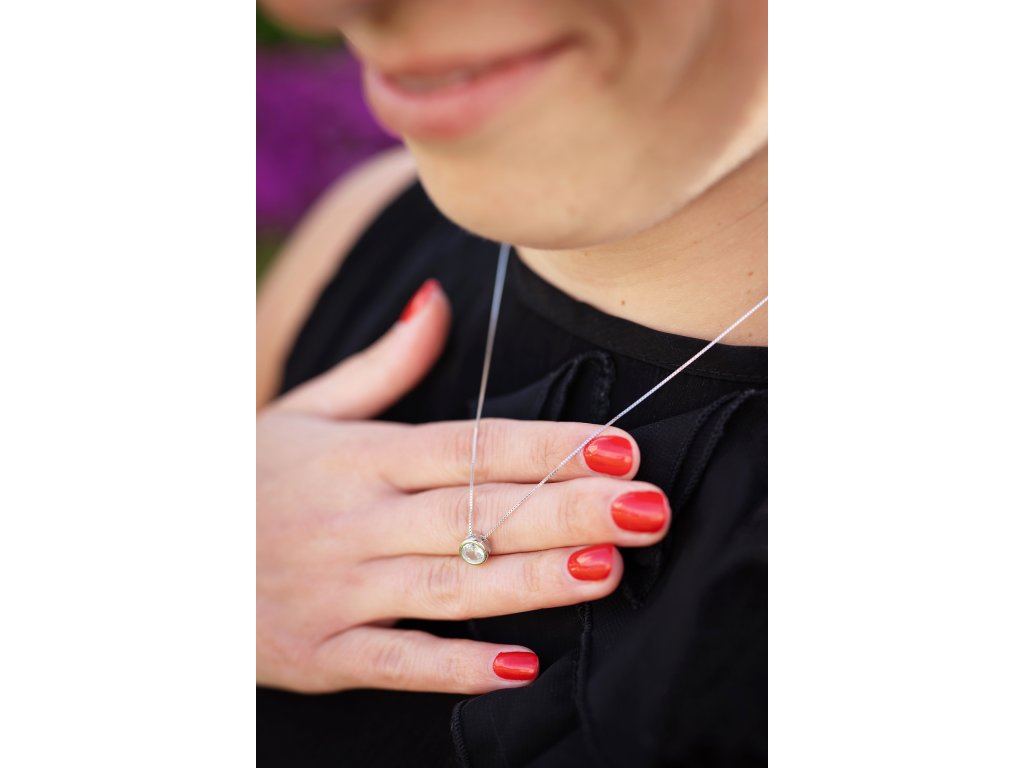 Na jemném stříbrném řetízku vyniká kamínek v čirém provedení, který se třpytí při každém pohybu. Délka náhrdelníku je 42 cm s možností prodloužení o 5 cm, takže krásně padne. Tento šperk dodá vašemu vzhledu jiskru a decentní eleganci, a stane se oblíbeným kouskem pro každý den.
