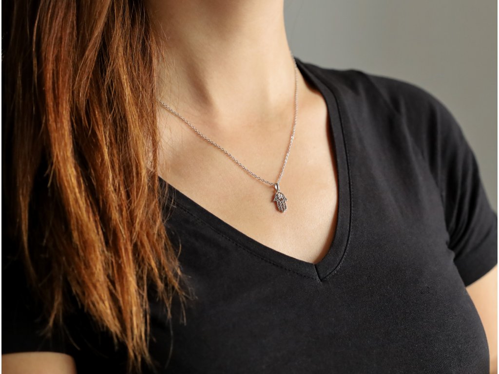 Jemný stříbrný náhrdelník s designem Hamsa AGT-N012W