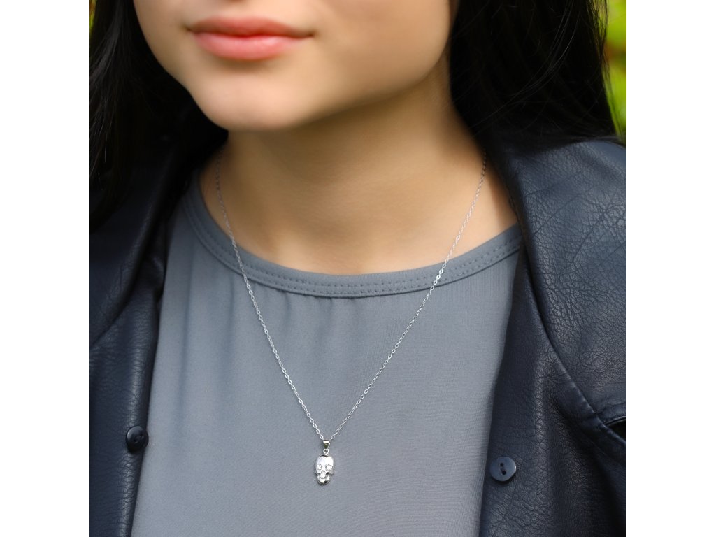 Jemný stříbrný náhrdelník s lebkou AGT-N028X