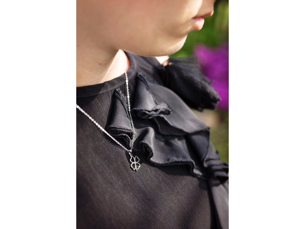 Náhrdelník je vyroben z kvalitního stříbra a zdobí jej jednoduchý, ale půvabný přívěsek čtyřlístku. Díky nastavitelné délce 42 + 5 cm se snadno přizpůsobí a pohodlně nosí. Díky svému symbolickému významu se stává krásným dárkem od srdce.