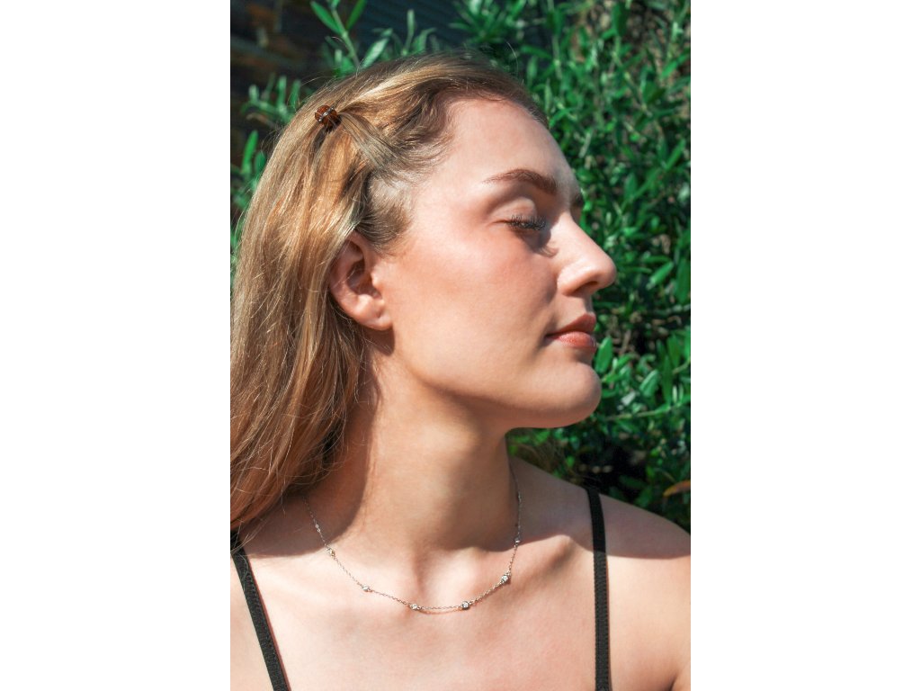 Náhrdelník je dekorovaný jemně broušenými zirkony, které nádherně září při každém pohybu. Řetízek je vyroben z čistého stříbra, což zaručuje jeho eleganci i odolnost. Díky nastavitelné délce 42 + 5 cm se pohodlně přizpůsobí každé ženě. Tento kousek se hodí pro každodenní nošení i speciální příležitosti.