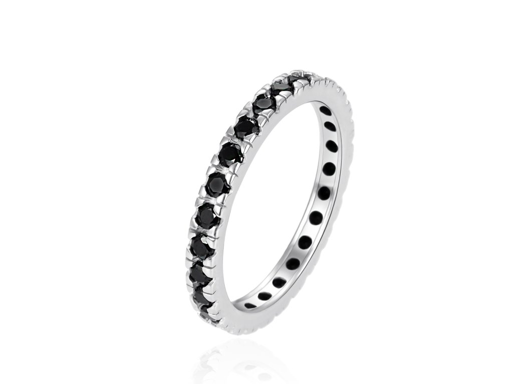 Jemný stříbrný prsten s černými zirkony AGT-R16BK