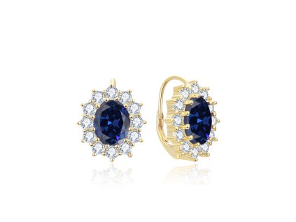 Výrazné náušnice s modrými zirkony Elegantní náušnice, které okouzlí hlubokými odstíny tmavě modrých zirkonů. Jejich krása ještě více vynikne díky pozlacení žlutým zlatem, jež...