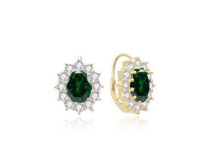 Výrazné náušnice se zelenými zirkony Okouzlující náušnice zdobené smaragdově zelenými zirkony, které působí svěže a elegantně. Jejich intenzivní barvu krásně doplňuje pozlacení...