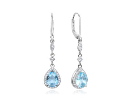 Visací stříbrné náušnice se světle modrými zirkony Nádherné visací náušnice vyrobené z kvalitního stříbra, zdobené úchvatnými světle modrými zirkony, které okamžitě upoutají...