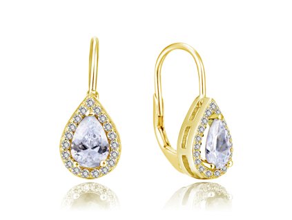 Elegantní pozlacené náušnice se zirkony Visací náušnice ve tvaru kapky, které zaujmou oslnivým třpytem zirkonů. Uprostřed se nachází větší centrální zirkon, obklopený menšími...