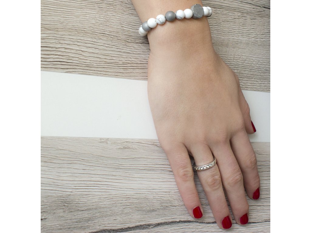Korálkový náramek z drůzy achátu a howlitu MINK123