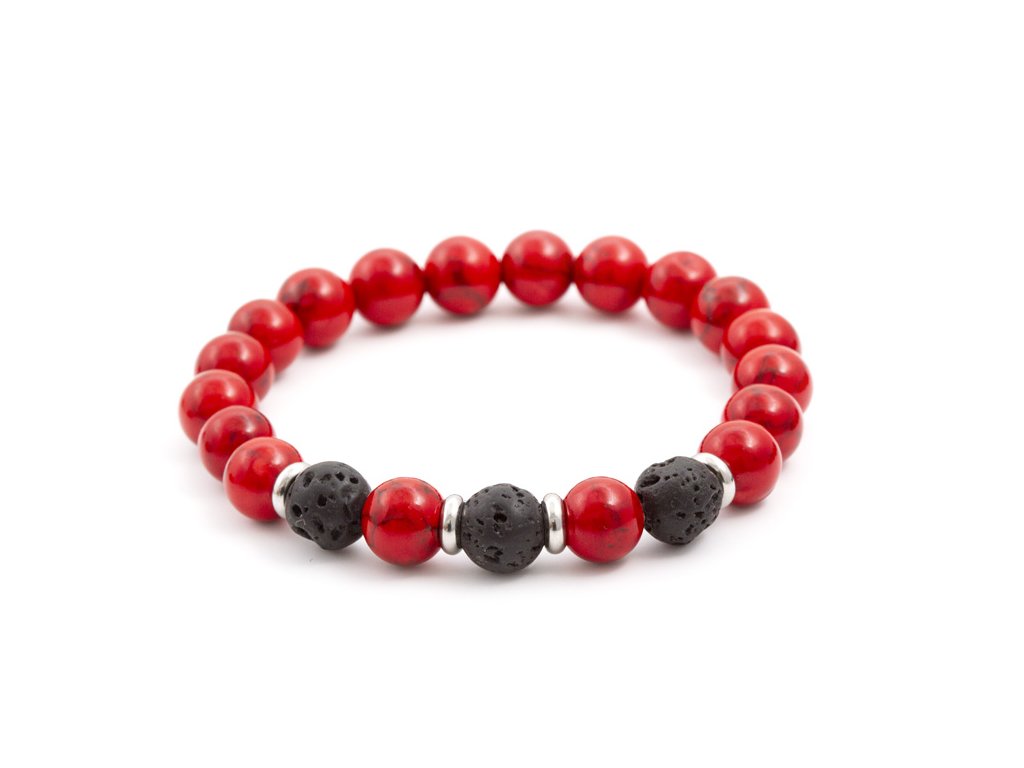 Korálkový náramek z lávového kamene a howlitu MINK22/17