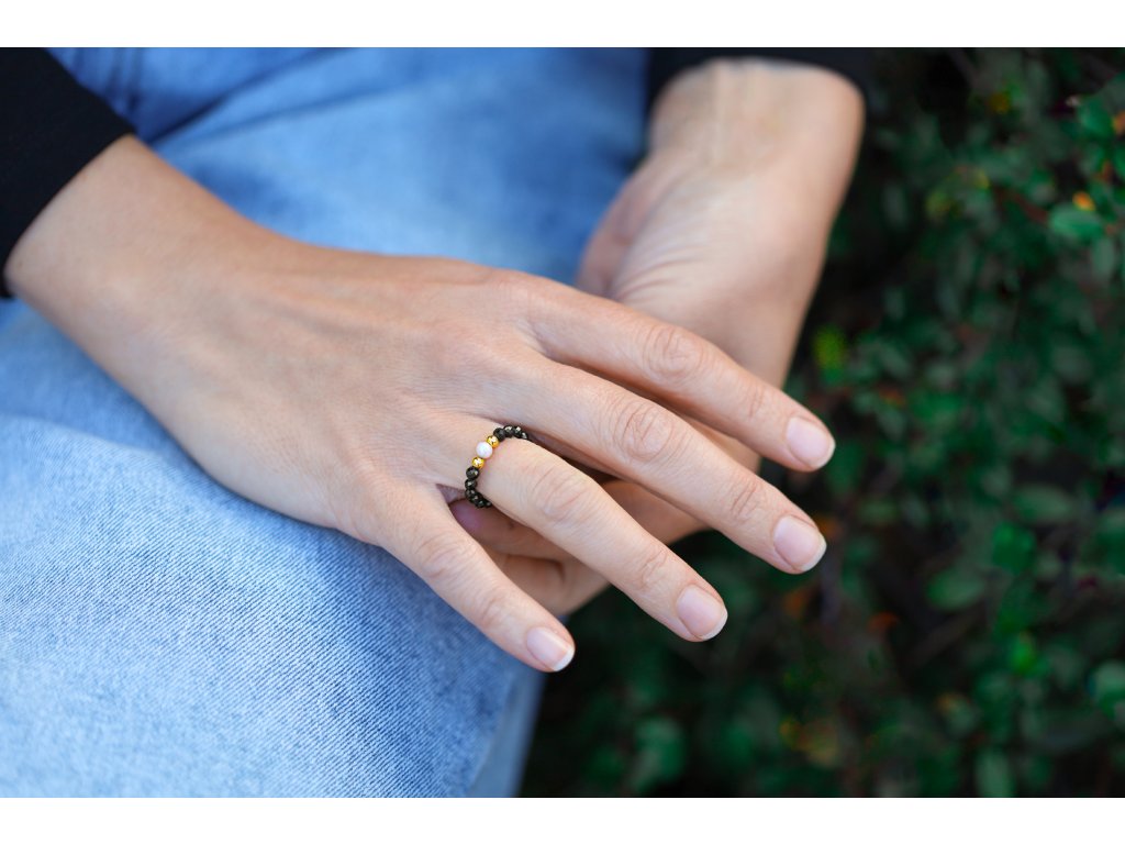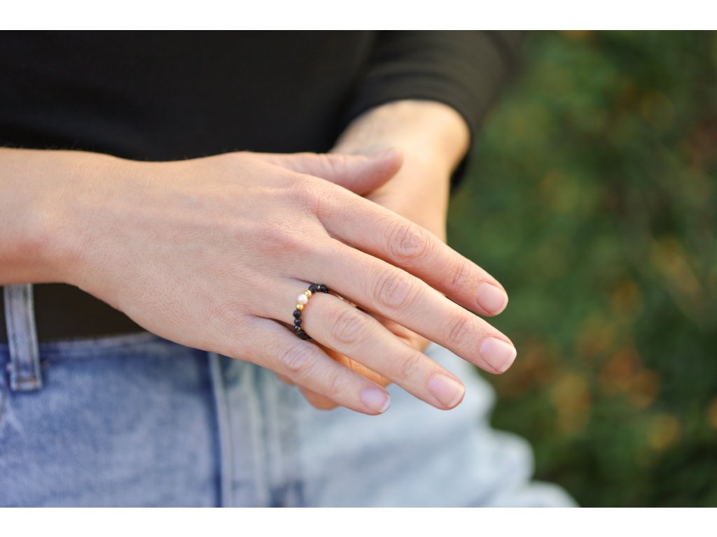 Korálkový prsten se spinelem a pravou perlou POL-R04PG