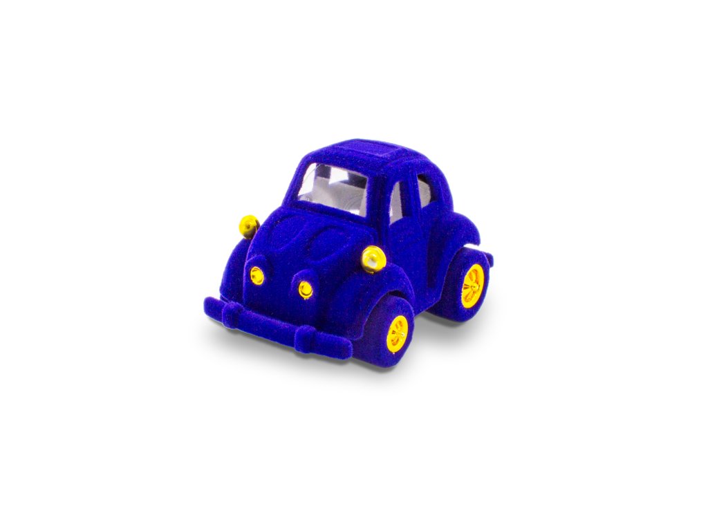 Atypická sametová dárková krabička AUTO je ideální na prstýnek nebo drobné náušnice. Uvnitř se nachází bílá poduška.