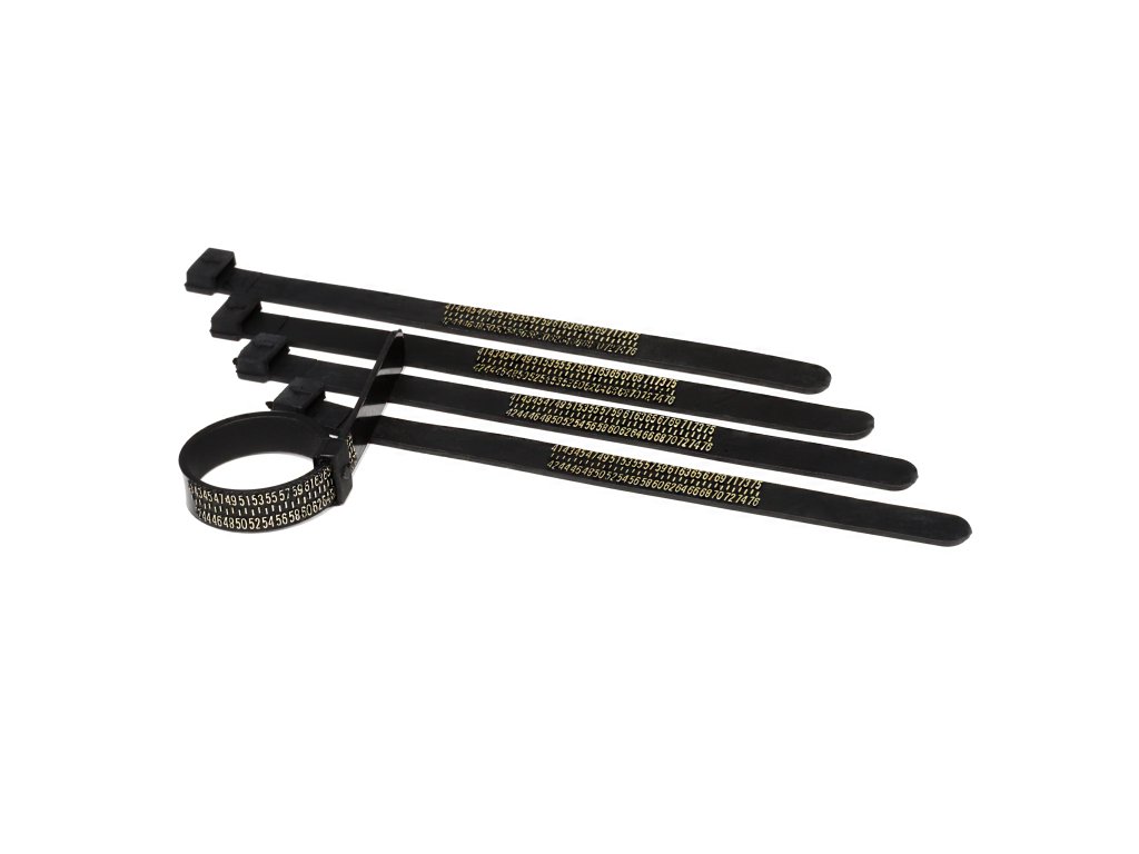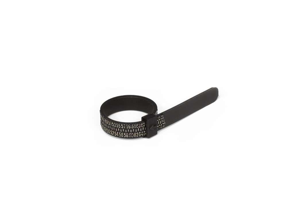 Jednoduchá pomůcka pro zjištění potřebné velikosti prstenu. Měřič navlékněte na prst a jemně utáhněte tak, aby se pohyboval nahoru i dolů. Vyrobeno z plastu.