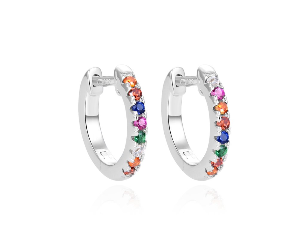 Kruhové stříbrné náušnice s barevnými zirkony AGUC2578D