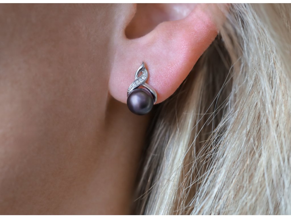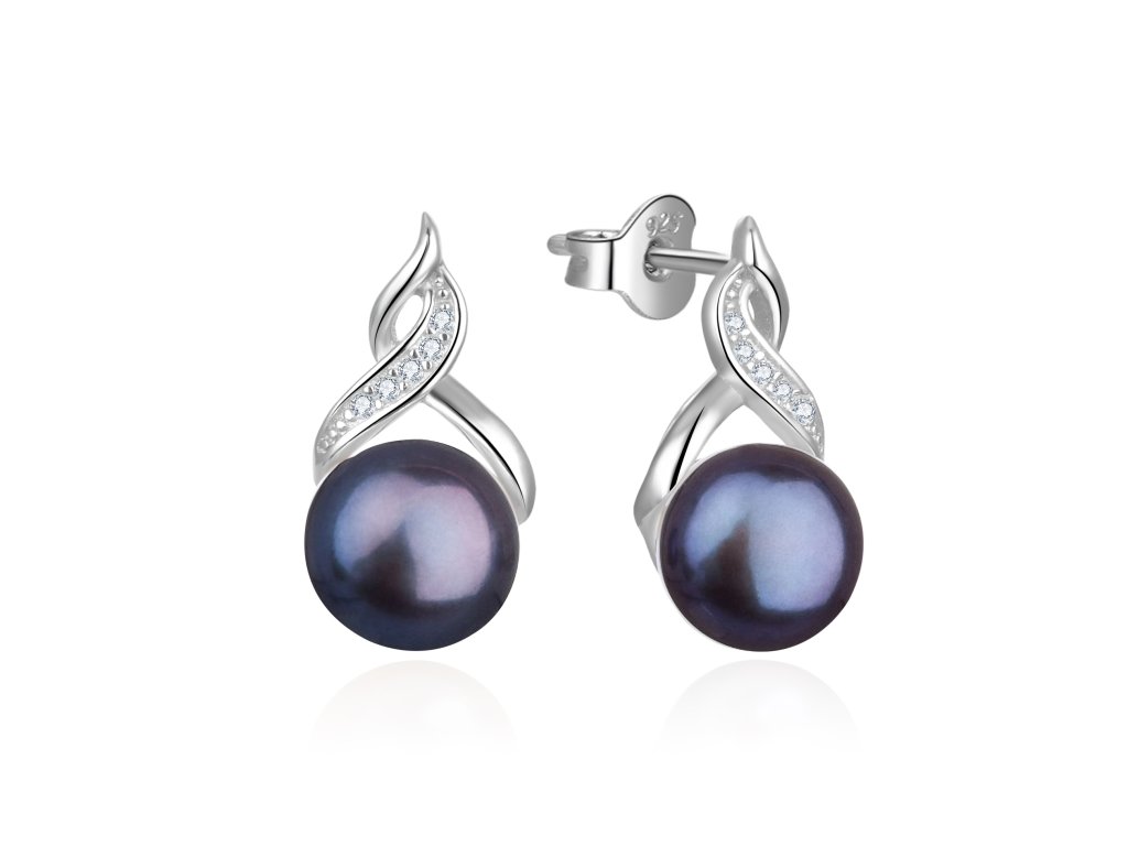 Luxusní perlové náušnice se zirkony AGUP2616P-BLACK
