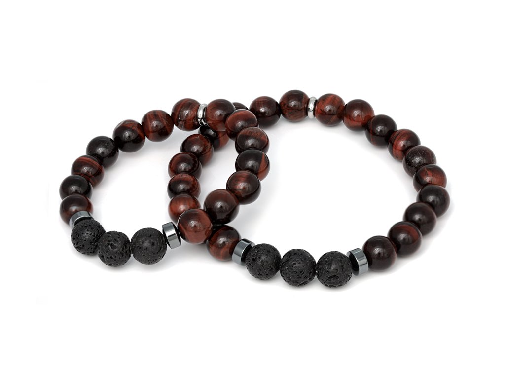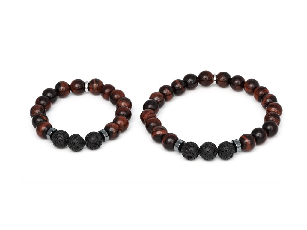 Minerální korálkový náramek pro otce se synem (tygří oko, lávový kámen, hematit) MINK137/SET