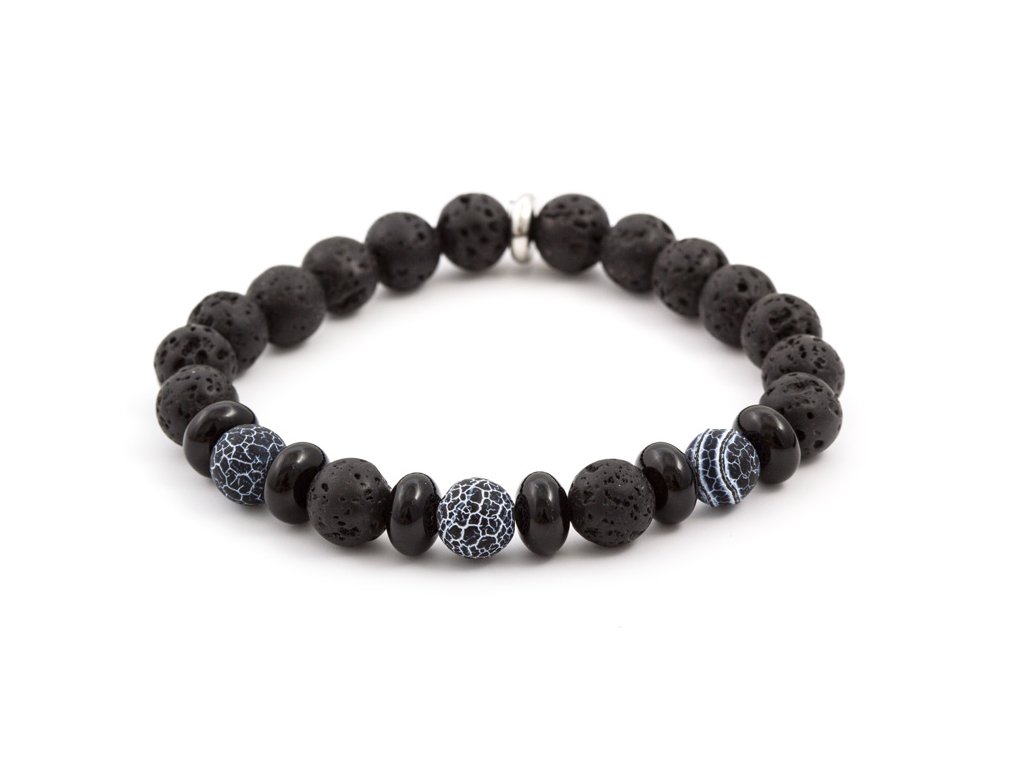 Minerální korálkový náramek z achátu, onyxu a lávového kamene MINK63