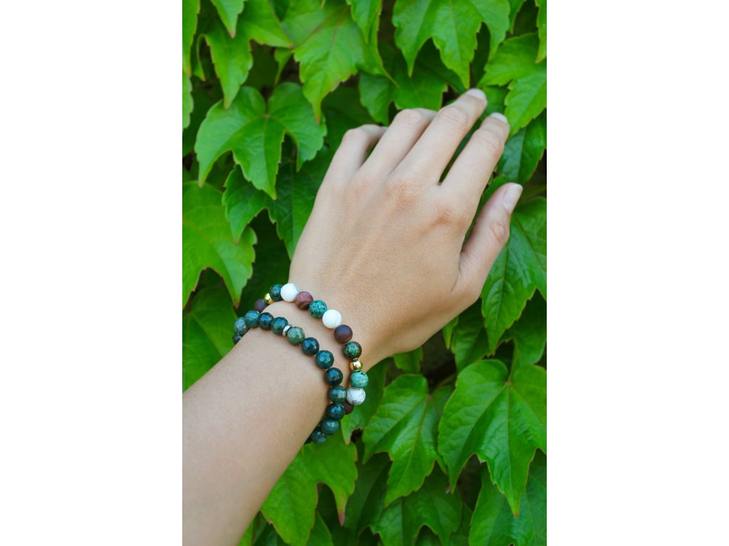Díky pružné gumičce se náramek pohodlně nosí a snadno přizpůsobí zápěstí. Zelený achát podporuje harmonii, klid a vyrovnanost mysli, pomáhá zbavit se stresu a přináší pocit vnitřní stability. Náramek je vyroben ručně v České republice, každý kus je originál. Hodí se zejména pro znamení Býk, Panna a Rak, a je ideální jako dárek, pro každodenní nošení, nebo pro chvíle, kdy chcete dodat svému vzhledu eleganci a pozitivní energii.