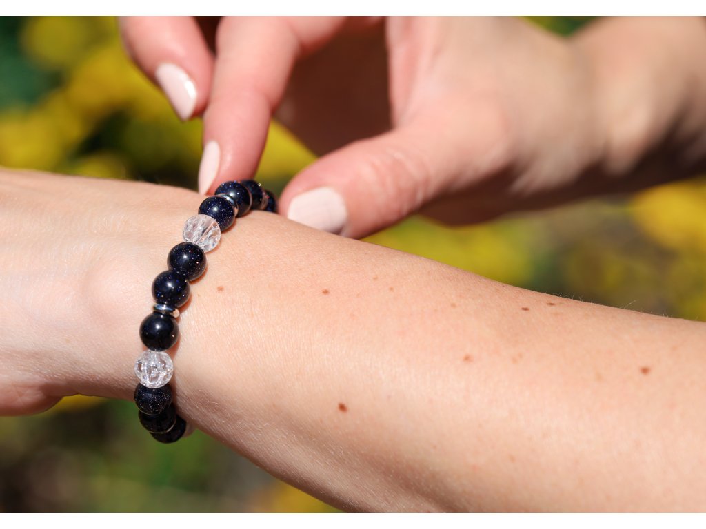 Díky pružné gumičce se náramek pohodlně nosí a skvěle přizpůsobí zápěstí. Aventurín přináší klid, štěstí a sebedůvěru, zatímco praskaný křišťál podporuje harmonii a duševní rovnováhu. Náramek je vyroben ručně v České republice, každý kus je originál. Vhodný pro znamení Býk, Panna a Štír. Skvělá volba pro každodenní nošení, jako dárek nebo doplněk, který podtrhne vaši přirozenou eleganci.