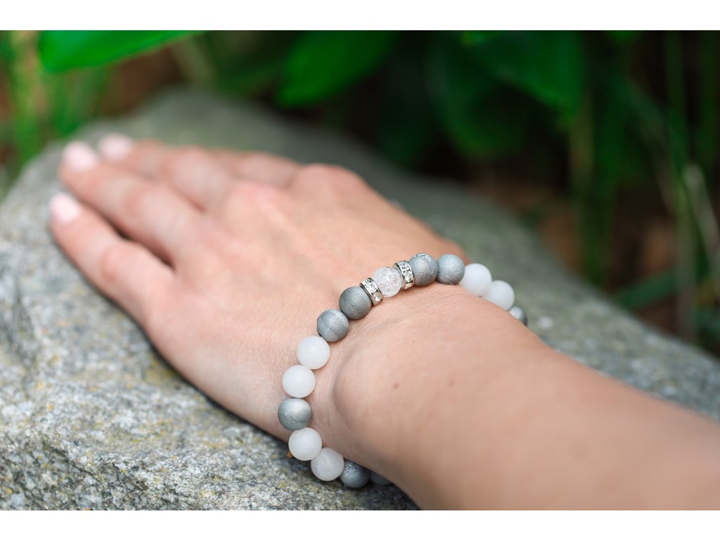Díky pružné gumičce se náramek pohodlně nosí a přizpůsobí zápěstí. Achát a křišťál podporují jasnost mysli, harmonii a vnitřní klid, přinášejí pocit lehkosti a pozitivní energie do každého dne. Náramek je vyroben ručně v České republice, každý kus je originál. Hodí se pro znamení Panna, Váhy a Vodnář. Skvělý doplněk k outfitu, který zvýrazní váš osobní styl a jemnou eleganci.