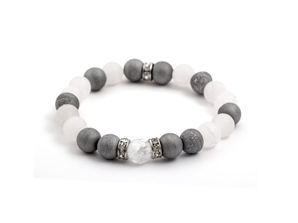 Minerální korálkový náramek z drůzy achátu a křišťálu MINK75/17