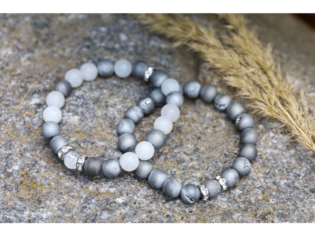 Minerální korálkový náramek z drůzy achátu MINK79/17