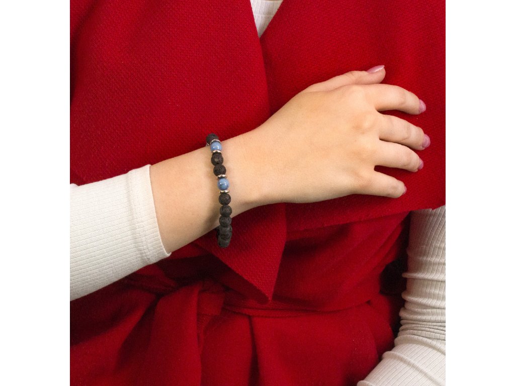 Díky pružné gumičce se náramek pohodlně nosí a přizpůsobí zápěstí. Howlit a lávový kámen podporují vnitřní klid, rovnováhu a pozitivní energii, přinášejí pocit ochrany a stability do každodenního života. Náramek je vyroben ručně v České republice, každý kus je originál. Hodí se pro znamení Lev, Beran a Býk. Skvělý jako doplněk k outfitu, který dodá vašemu stylu jemný charakter a harmonii.