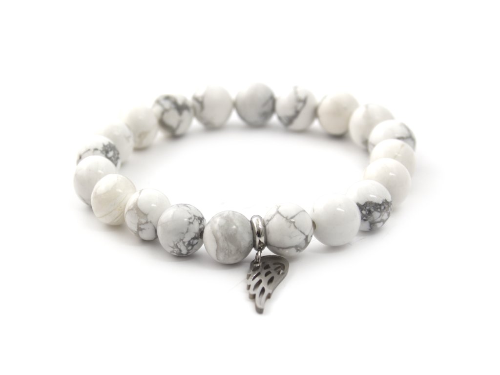 Díky pružné gumičce se náramek snadno přizpůsobí každému zápěstí. Howlit přináší pocit klidu, vyrovnanosti a pomáhá uvolnit stres, zatímco andělské křídlo je symbolem ochrany a naděje. Náramek se hodí pro znamení Býk, Panna a Vodnář. Skvělá volba pro ty, kteří milují jemné, duchovně laděné šperky s hlubším významem.