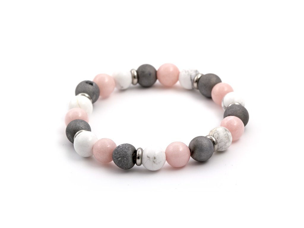 Tento šperk je ručně vyráběn v České republice a kombinuje vlastnosti tří mocných kamenů. Achát přináší ochranu a vyrovnanost, howlit uklidňuje mysl a pomáhá snižovat stres, růžový jadeit zase podpoří lásku a harmonii. Náramek je vhodný především pro znamení Váhy, Rak a Býk, ale potěší každého, kdo hledá originální doplněk plný pozitivní energie. Skvělý jako dárek pro výjimečné chvíle.