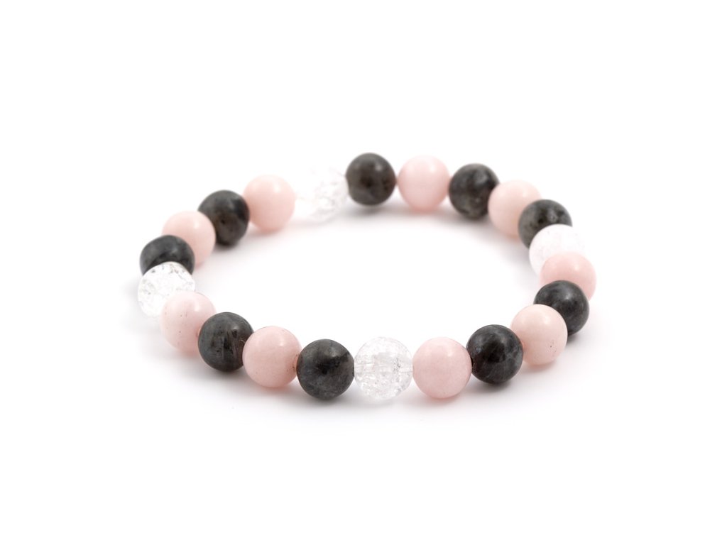 Minerální korálkový náramek z jadeitu, křišťálu a labradoritu MINK09/17