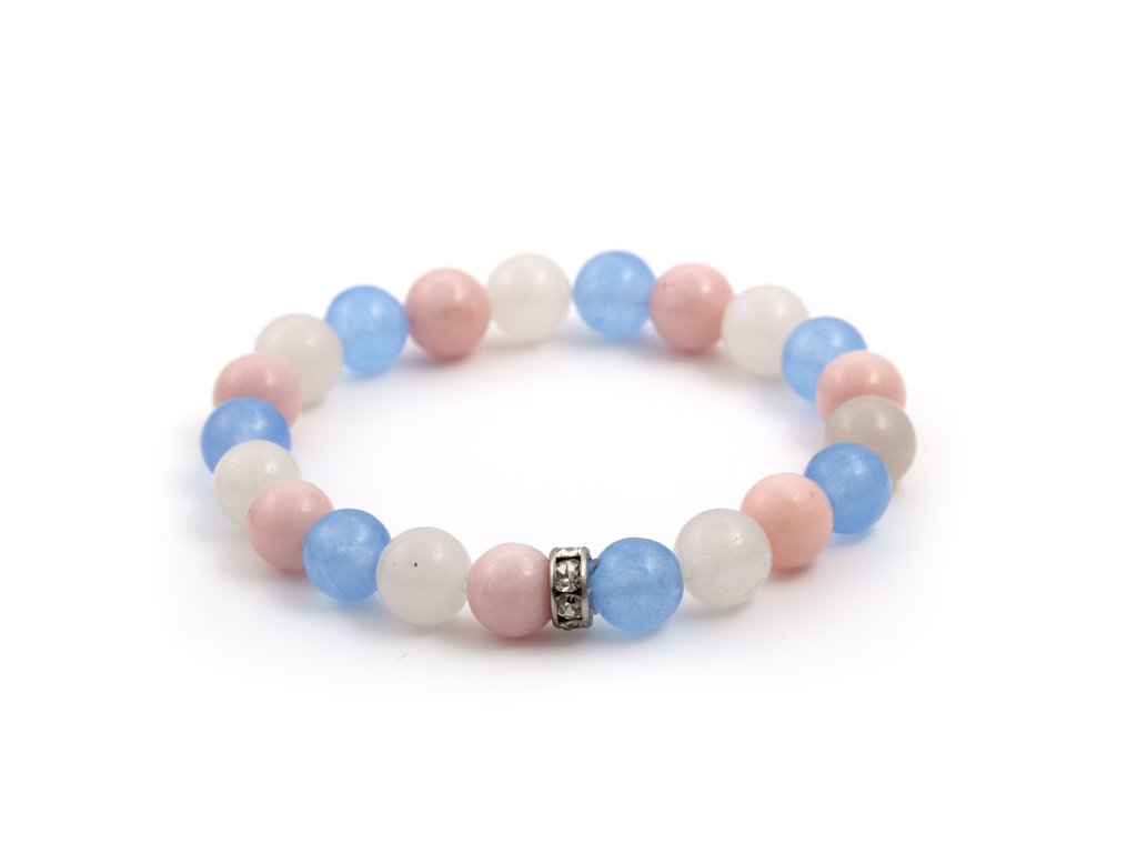 Díky pružné gumičce se náramek pohodlně nosí a dokonale sedí na zápěstí. Růžový jadeit podporuje citovou rovnováhu, sněžný jadeit přináší pocit klidu a světle modrý jadeit dodává svěžest a pozitivní energii, čímž vzniká pocit vyrovnanosti a harmonie. Náramek je ručně vyroben v České republice a každý kus je originál. Hodí se pro znamení Rak, Býk, Panna a Váhy a je vhodný jako doplněk, který zvýrazní váš osobní styl a jemnou eleganci.