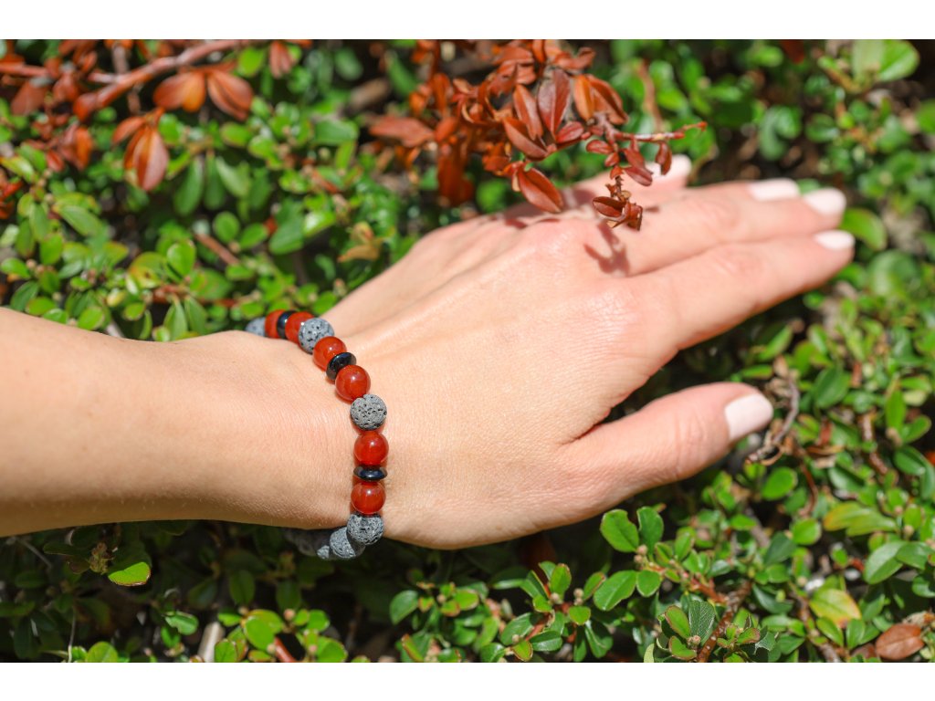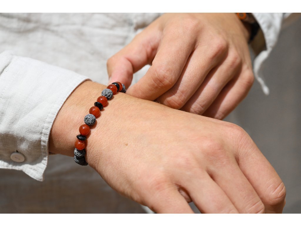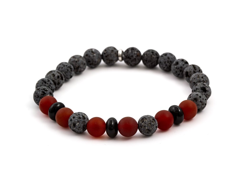 Minerální korálkový náramek z karneolu, lávového kamene a onyxu MINK65