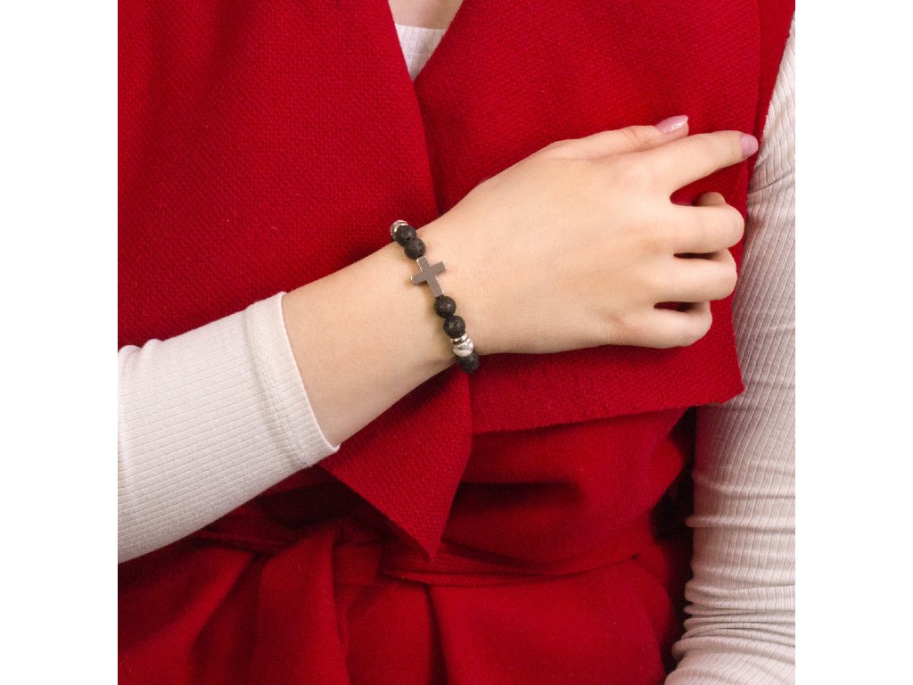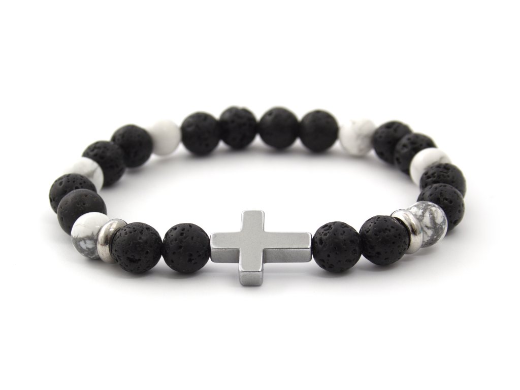 Minerální korálkový náramek z lávového kamene, howlitu a hematitu MINK64