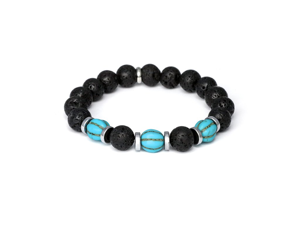 Minerální korálkový náramek z lávového kamene, tyrkysu a hematitu MINK163/20