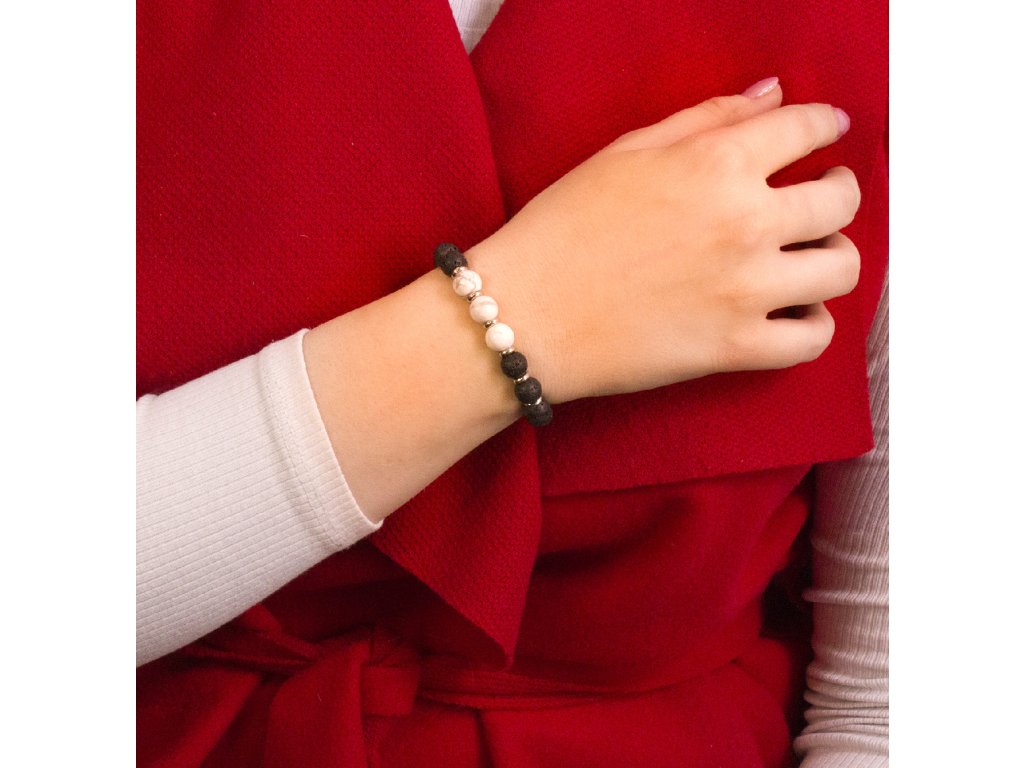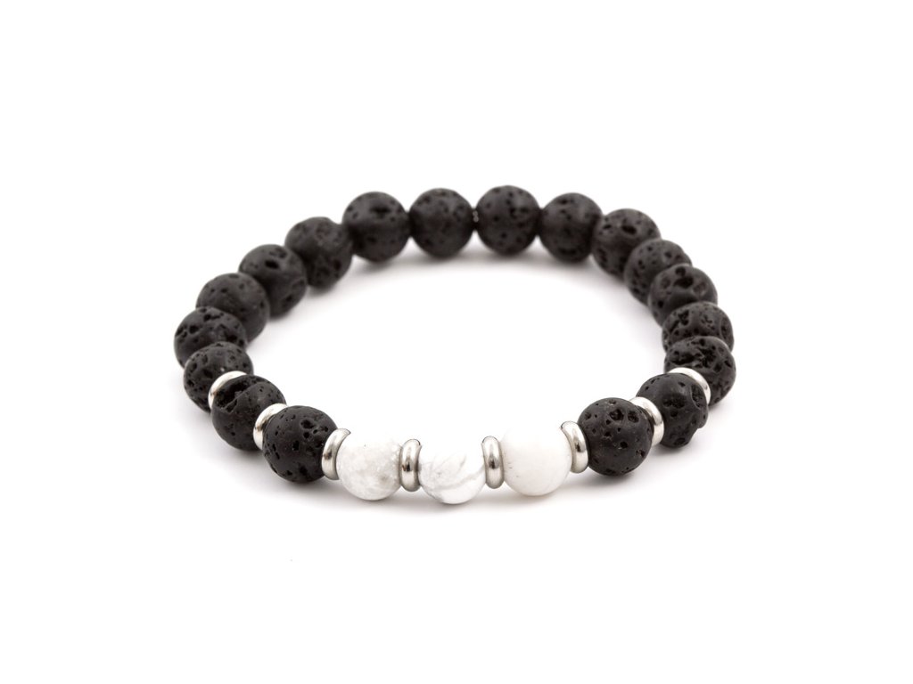 Minerální korálkový náramek z lávového kamene a howlitu MINK52