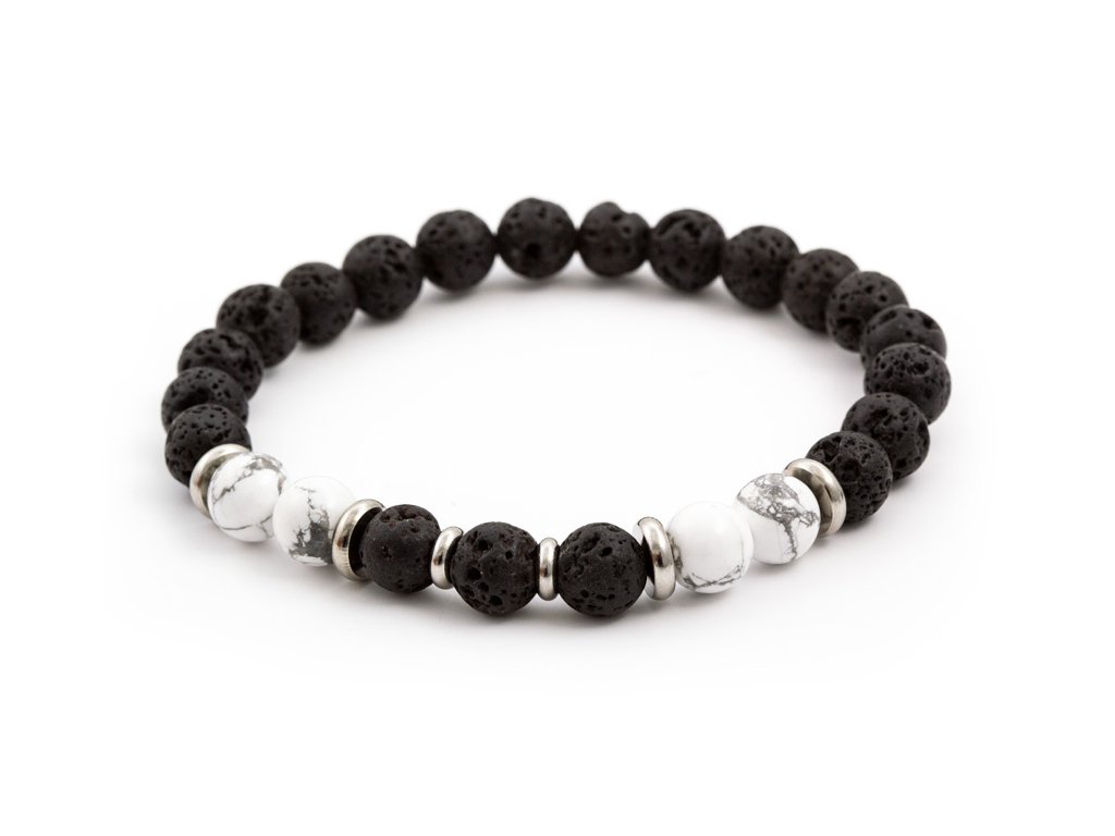 Minerální korálkový náramek z lávového kamene a howlitu MINK62