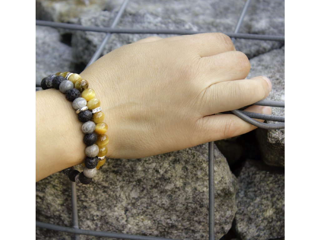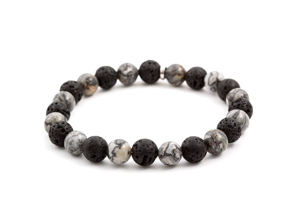 Minerální korálkový náramek z lávového kamene a jaspisu MINK59