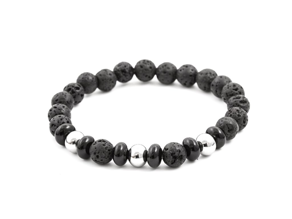 Minerální korálkový náramek z lávového kamene a onyxu MINK57