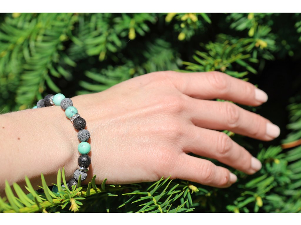 Minerální korálkový náramek z lávového kamene a tyrkysu MINK100/18