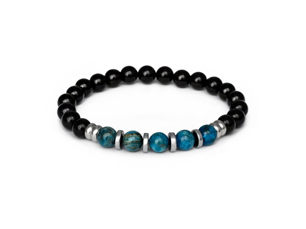 Tento náramek je ručně vyráběný v České republice, což zaručuje jeho vysokou kvalitu a precizní zpracování. Onyx přináší ochranu a stabilitu, apatitu dodává harmonii a povzbuzení, zatímco hematit podporuje soustředění a vnitřní sílu. Náramek je vhodný zejména pro znamení Štíra, Vodnáře a Kozoroha, ale svou energii nabídne každému, kdo hledá rovnováhu a sílu. Skvělý tip na dárek i osobní doplněk.