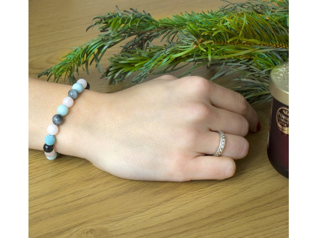 Minerální korálkový náramek z růženínu, amazonitu a labradoritu MINK10/17