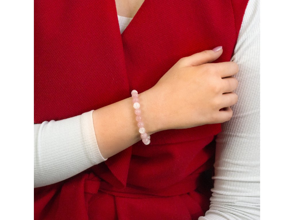 Tento náramek je ručně vyráběný v České republice, což zaručuje jeho vysokou kvalitu a pečlivé zpracování. Růženín je symbolem lásky a něhy, zatímco praskaný křišťál přináší čistotu a harmonii. Náramek je vhodný zejména pro znamení Váhy, Raka a Býka, ale svou jemnou energií potěší každého, kdo hledá vnitřní klid a krásu. Skvělý tip na dárek i osobní doplněk.