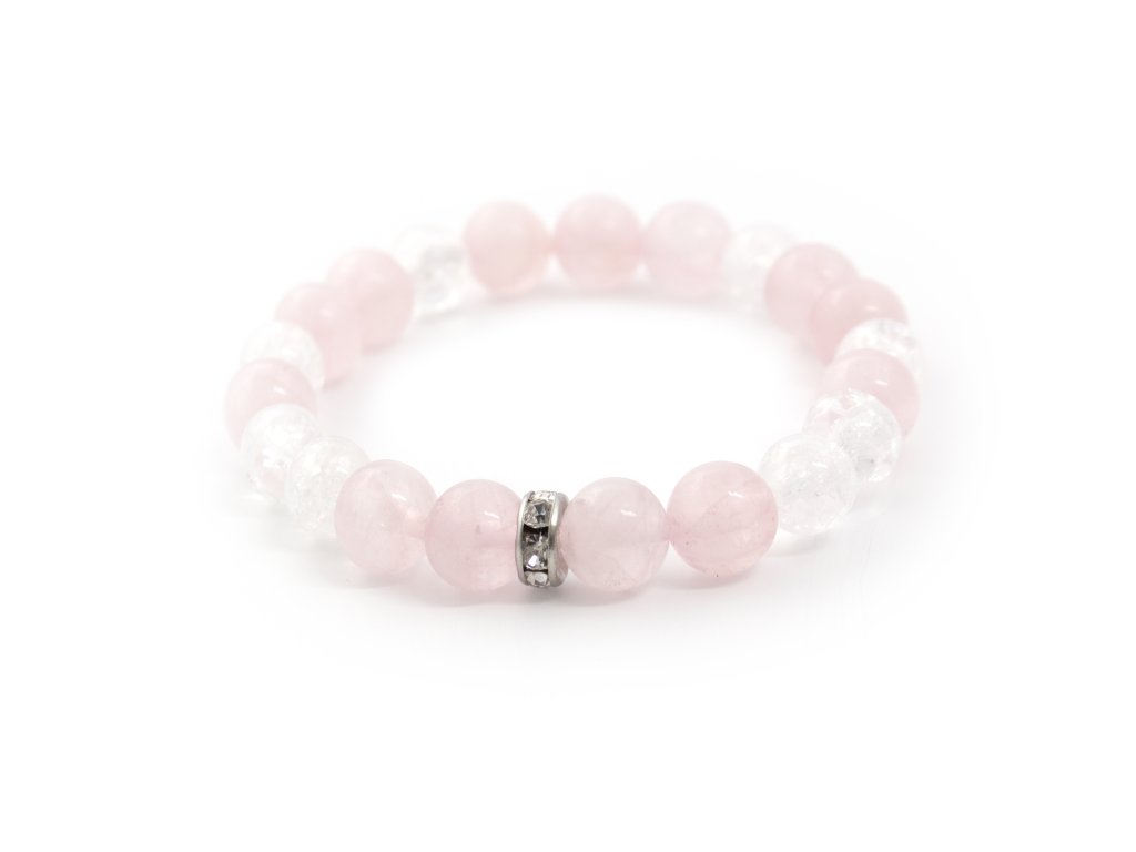 Minerální korálkový náramek z růženínu a praskaného křišťálu MINK14/17