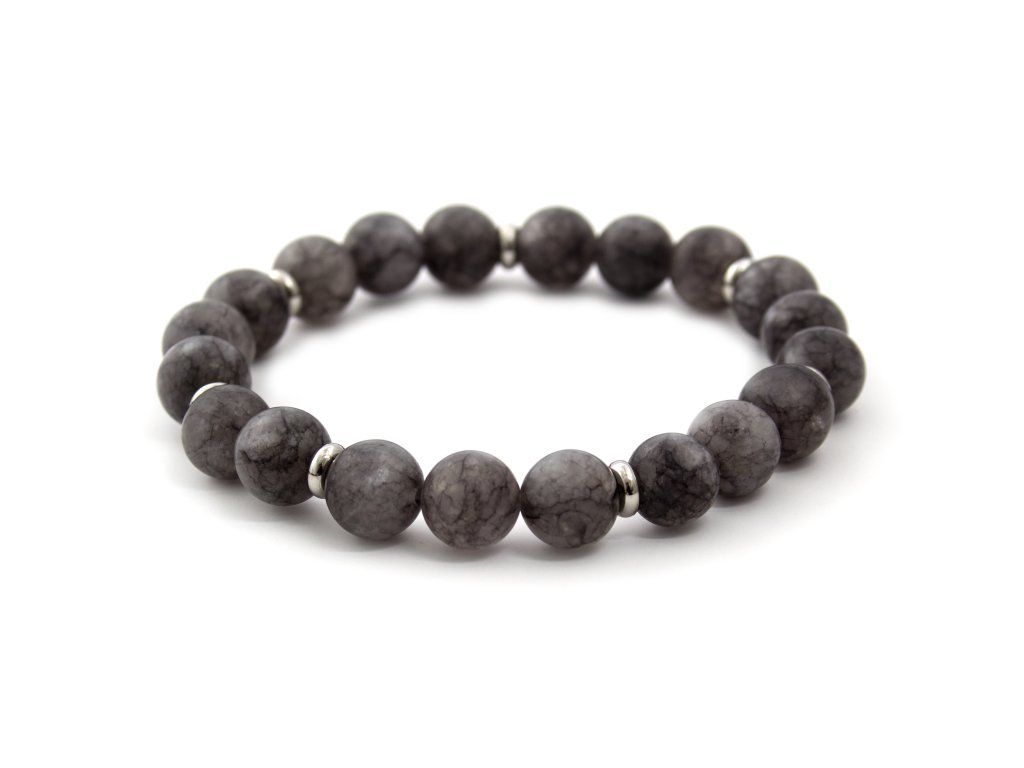 Minerální korálkový náramek z šedého jadeitu MINK87