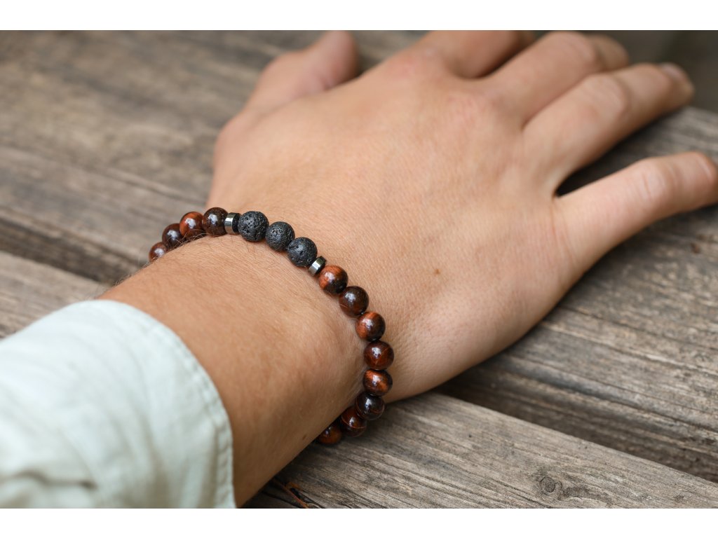 | Přírodní kámen: | Hematit, Tygří oko, Lávový kámen |